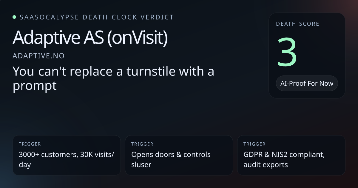 Strong defensive signals: access-control hardware integration, Azure AD sync, evacuation lists and audit/export — high operational & data switching costs.No visible AI/model dependency — reduces immediate model-replacement risk compared with many peers that wrap or depend on models.Enterprise trust markers (GDPR/NIS2 posture, municipal customers, AAA rating, 3000+ customers) indicate durable contracts and support-led lock‑in.