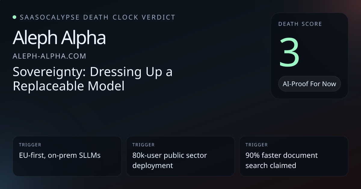 -3 Relative PlacementModestly decrease vulnerability — Aleph Alpha looks slightly more defensible than scored, given sovereign infra, domain‑trained models, measurable enterprise deployments and real switching costs.