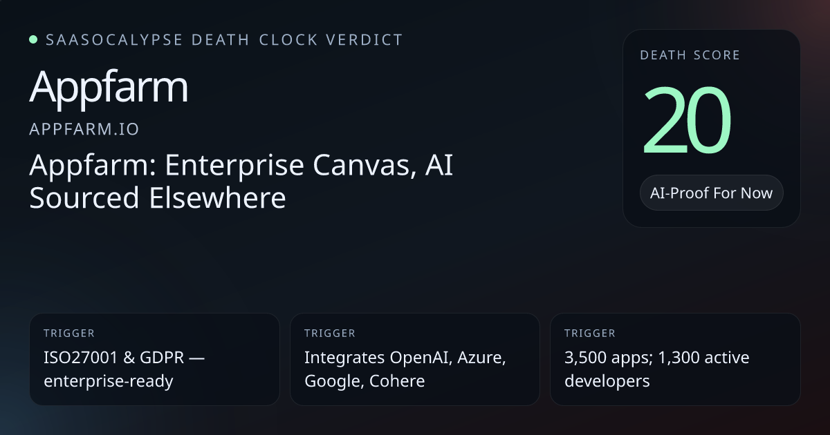 +24 Commodity PressureMarketing leans heavily on no-code + conversational app generation language that reads like a commodifiable UI layer, though enterprise features partially resist pure copy/paste replacement.