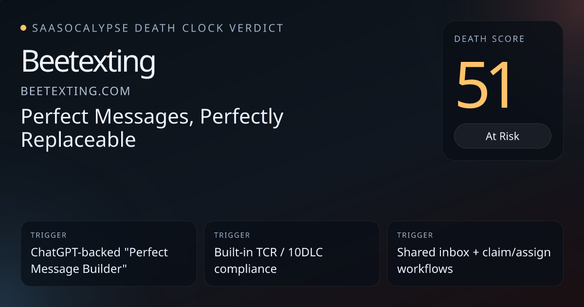 +32 Commodity PressureMarketing and feature names make this feel like a generic texting utility that can be reduced to an AI drafting layer.