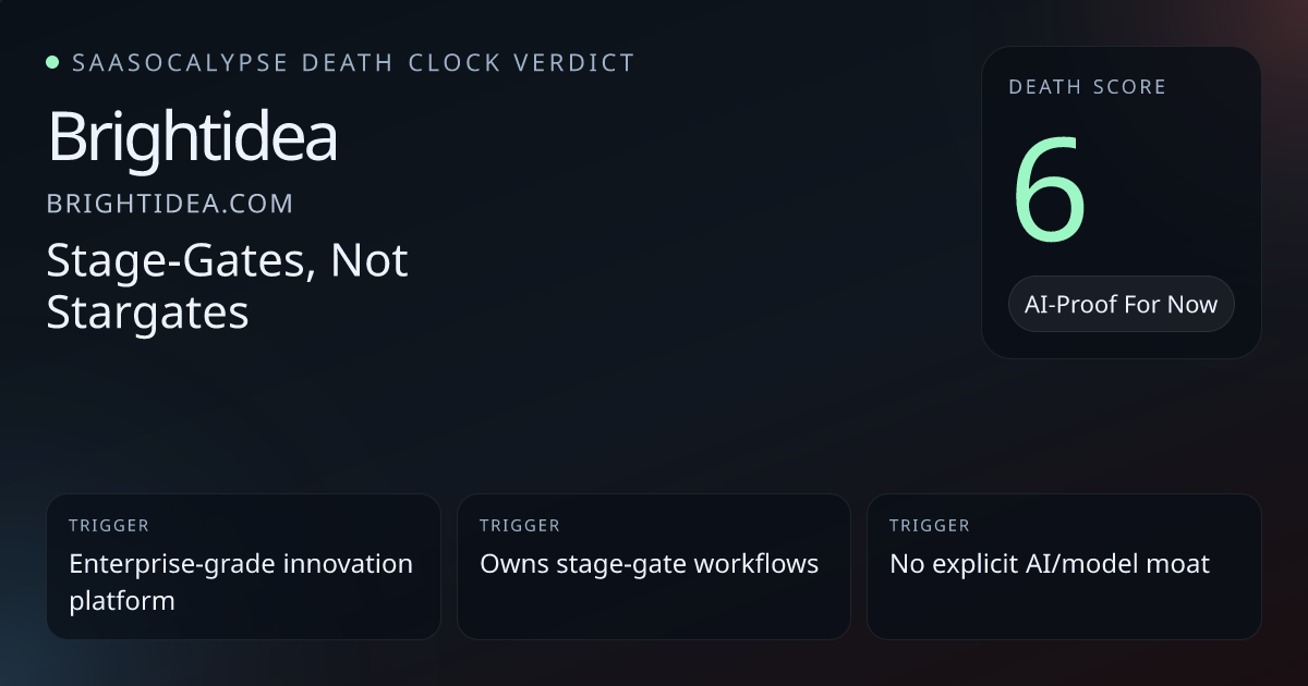 -4 Relative PlacementModest downward tweak — Brightidea looks safer than many 'At Risk' vertical workflows due to workflow ownership, enterprise trust, and low model dependence.
