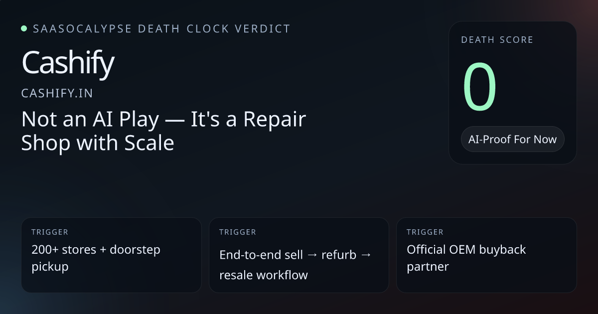 -3 Relative PlacementSlight downward tweak — Cashify looks even safer than its current score implies due to deep physical workflows, OEM partnerships and warranty/operations moats despite commodity‑style marketing.