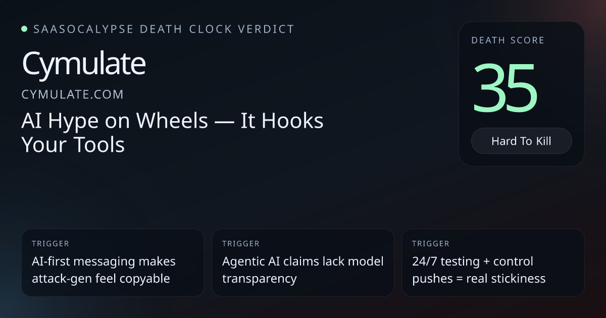 +32 Commodity PressureHomepage drenched in 'AI-powered', 'automated', 'continuous' language — the core value could be compressed into an LLM-driven attack-generator unless the proprietary BAS/CART engine is truly unique.