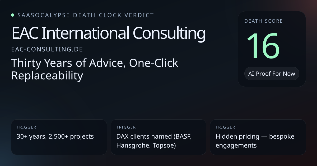 Offices in München, Shanghai, Mumbai, Kuala Lumpur, New YorkFormal Beirat / advisory board with senior industry figuresNamed large enterprise clients (DAX references) but no platform partnerships