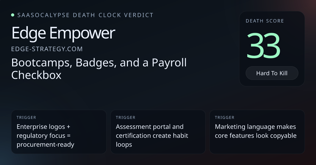 +32 Commodity PressureMarketing-forward language, generic claims, and a modular feature list make the product look easy to replicate or collapse into standard HR tooling.