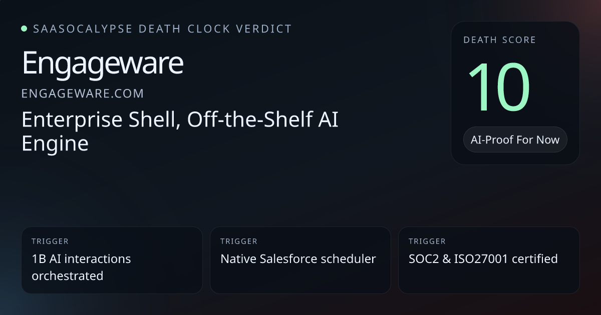 Deep platform entanglement (native Salesforce scheduler, CRM/CCaaS integrations, low‑code orchestration) raises switching costs.Enterprise trust signals (SOC2, ISO27001, GDPR, multi‑AZ HA, EDR) favor procurement resilience versus simple copycats.High reported usage and marquee regulated customers (1B AI interactions, 1.5B appointments, top banks) imply operational lock‑in and referenceability.