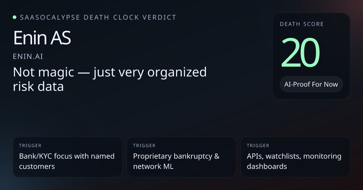 +12 Model DependencyClaims of proprietary bankruptcy and network ML dominate the pitch, but reliance on external data providers for PEP/sanctions and public registers limits pure model leverage.