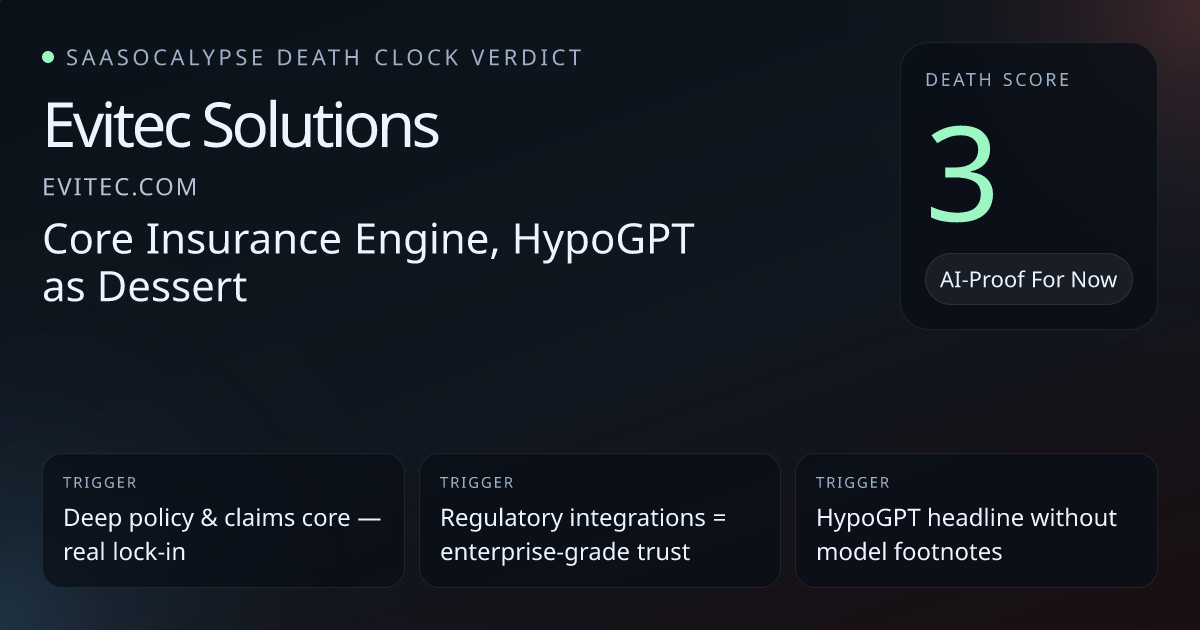 +3 Relative PlacementRaise vulnerability slightly — marketing-forward AI and branded 'HypoGPT' create modest wrapper/model risk, but deep workflow lock‑in, regulatory integrations and high switching costs keep it largely AI‑proof.