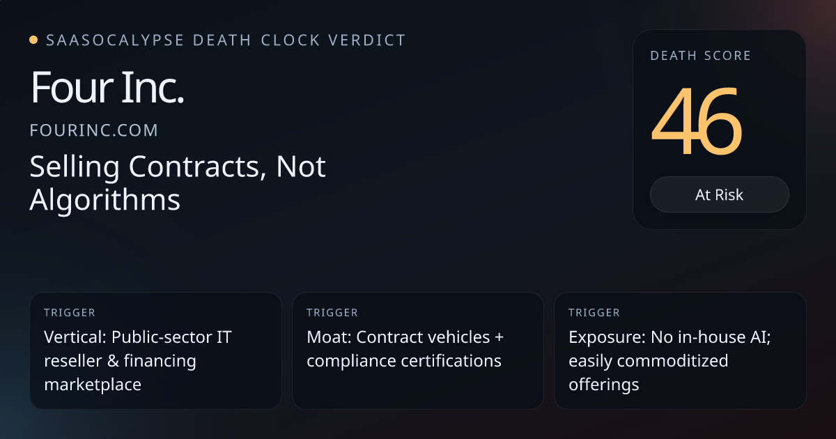 -5 Relative PlacementLower score: public‑sector procurement, contract vehicles, financing/leasing and certifications create real switching friction and distribution locks that materially reduce replaceability versus a generic marketplace.