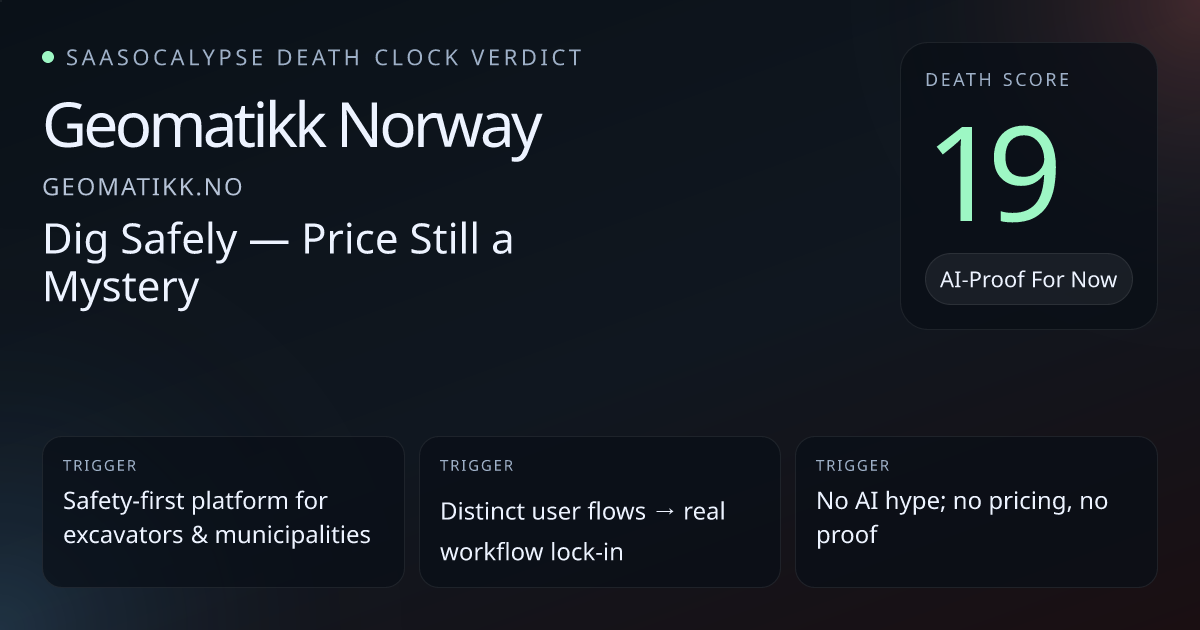 Move slightly safer: safety‑critical, physical infrastructure focus and public‑sector buyers reduce AI commoditization risk relative to peer vertical workflows, though limited visible integrations and opaque monetization keep some exposure.