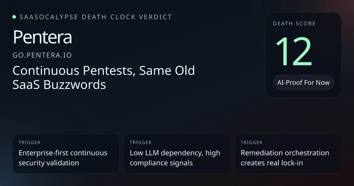 +12 Relative PlacementRaise vulnerability modestly — Pentera looks like a sticky enterprise platform but shows commodity messaging and peers sit ~20, so it shouldn’t stay at 0.