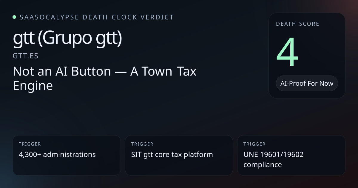 Peer anchor set centers ~34–50 (many vertical_workflow firms judged 'At Risk'), so a pure category baseline would push the score up from 0.High switching costs, large installed base (4,300+ administrations) and legally sticky tax/enforcement workflows provide strong defensibility.No product-level AI claims or visible model dependency—reduces near-term model-replacement risk.