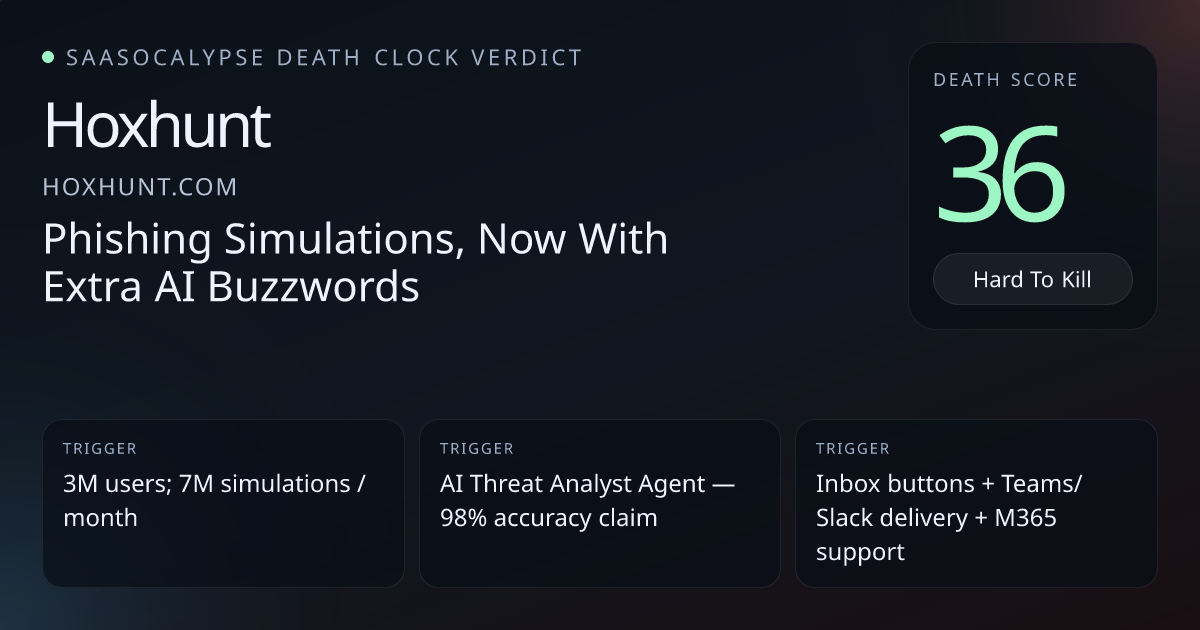 -5 Relative PlacementMove modestly safer — Hoxhunt shows real workflow embedding, integrations and switching costs that outweigh marketing-led wrapper risk.