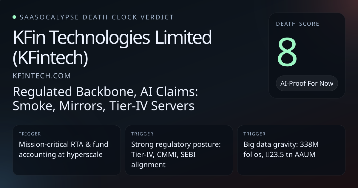 very large scale data (338M folios, high AAUM)"manages a mutual fund AAUM of ₹23.5 tn & processes over 2.3 million transactions each day"regulatory positioning (NPS CRA, SEBI-relevant services)