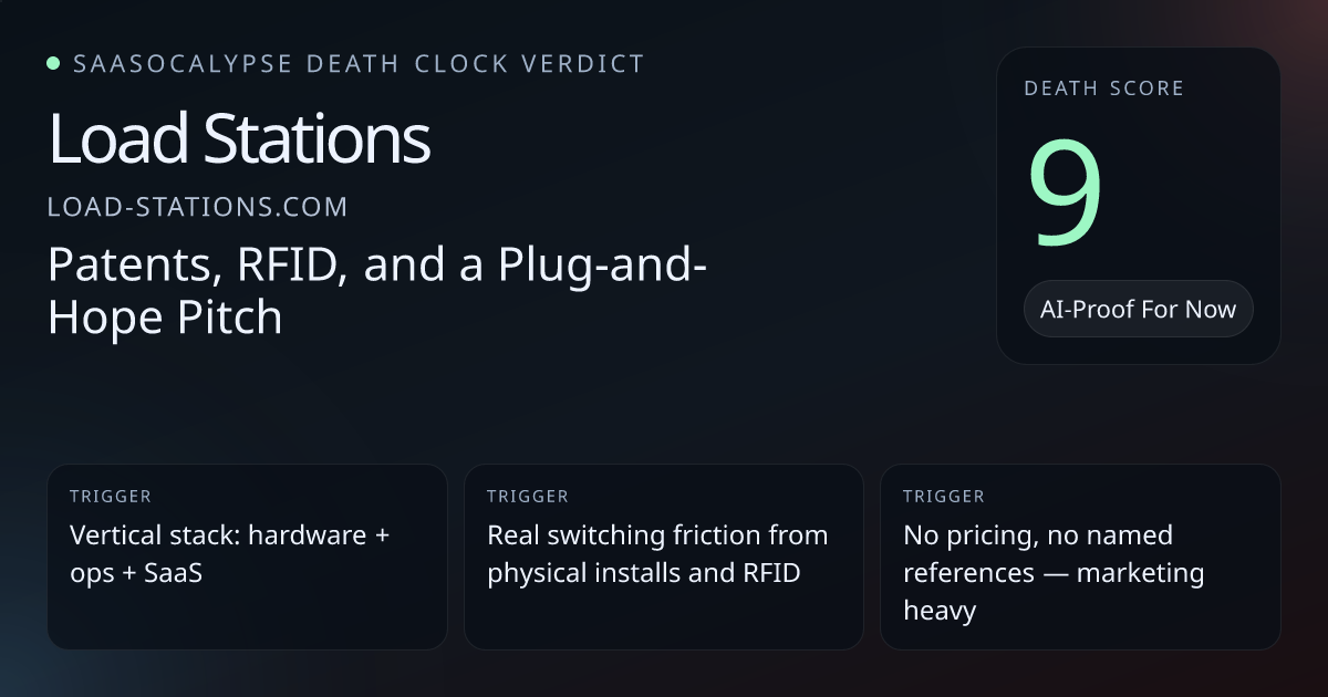 No AI positioning or third‑party model dependency (model_dependency_risk = 0) — removes large commoditization vector.High switching costs from physical installs, distributed RFID cards and operator services (switching_cost = 12).Deep workflow ownership: daily fleet supervision, billing/expense flows and employee access tie customers into operational routines (workflow_ownership = 12).