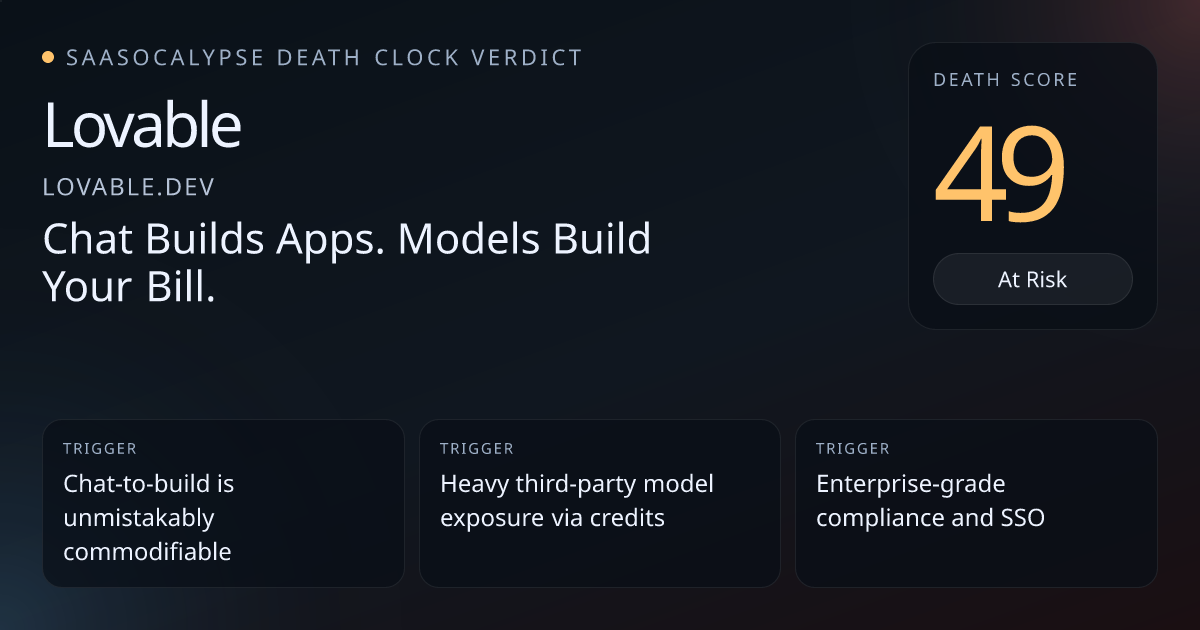 Peer anchor cluster centers around ~50–55 for vertical_workflow apps; Lovable sits near that median, so only a small move is warranted.Enterprise trust markers (SOC 2 Type II, ISO 27001, GDPR, regional data residency, audit logs) increase buyer stickiness relative to thin AI wrappers.Platform and integration depth (SSO/SCIM, automatic backend provisioning, internal API connectors, GitHub export, one‑click publish) create non‑trivial entanglement and exit friction.