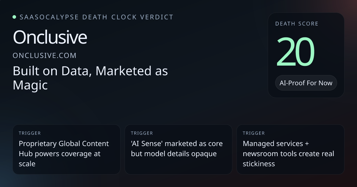 Frequent generic 'AI-powered' language and superlatives across pages increases surface for prompt/feature cloningNo third‑party model vendors or architectures disclosed — opaque model dependency raises replacement uncertaintyProprietary 'Global Content Hub' and licensed print/Broadcast coverage (NLA/CLA) indicate real data moat and legal friction for clones
