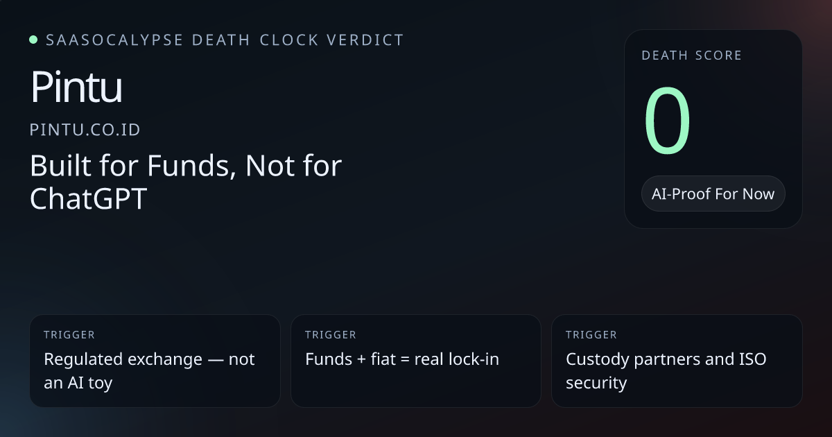 +8 Commodity PressureMarketing copy is generic, but core value (fiat rails, custody, regulated exchange) is hard to reduce to a single AI feature.