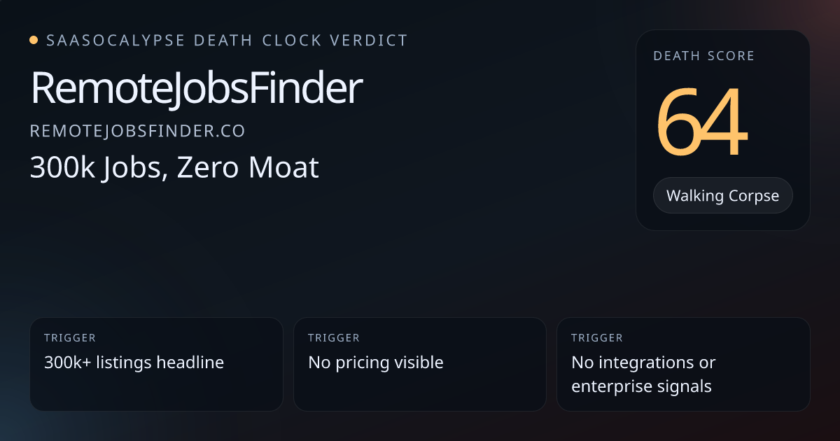 +40 Commodity PressureAppears as a generic job-listings aggregator — easy to copy or subsume into search, marketplaces, or larger portals.