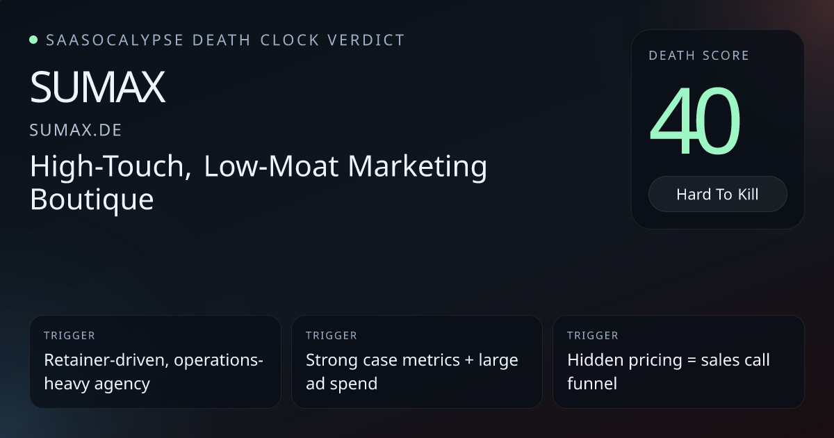 Strong enterprise signals (50+ employees, 20+ years, 3000+ projects, 300M+ ad spend, 40+ certifications) imply real client trust and operational lock‑in.Retainer-style ongoing campaign management, KPI dashboards and long-term SEO/CRO work create repeatable workflow ownership and switching friction.No visible AI/model reliance — reduces risk of rapid displacement by a single prompt or model swap compared with peers that are thin AI wrappers.