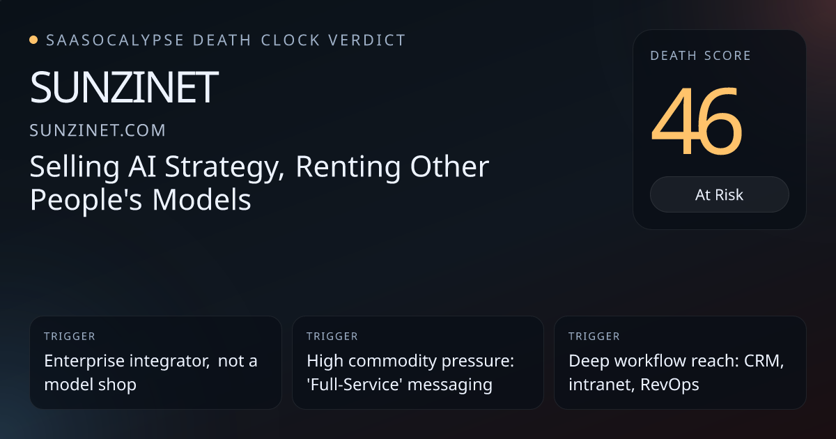 +2 Relative PlacementSlightly more vulnerable — agency/service‑led positioning, commodity AI messaging and no visible model IP outweigh modest workflow lock‑in.
